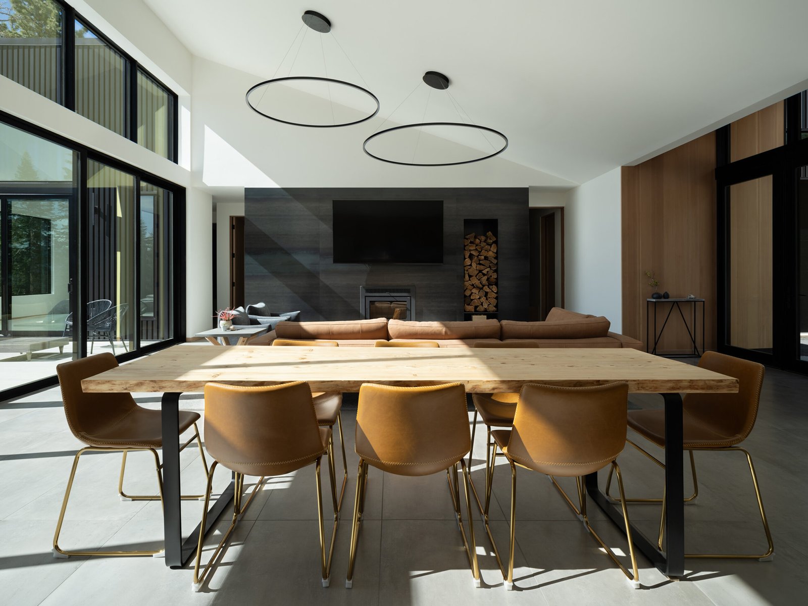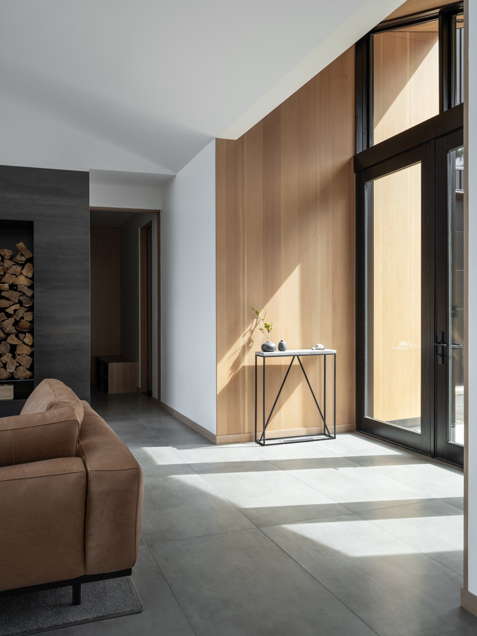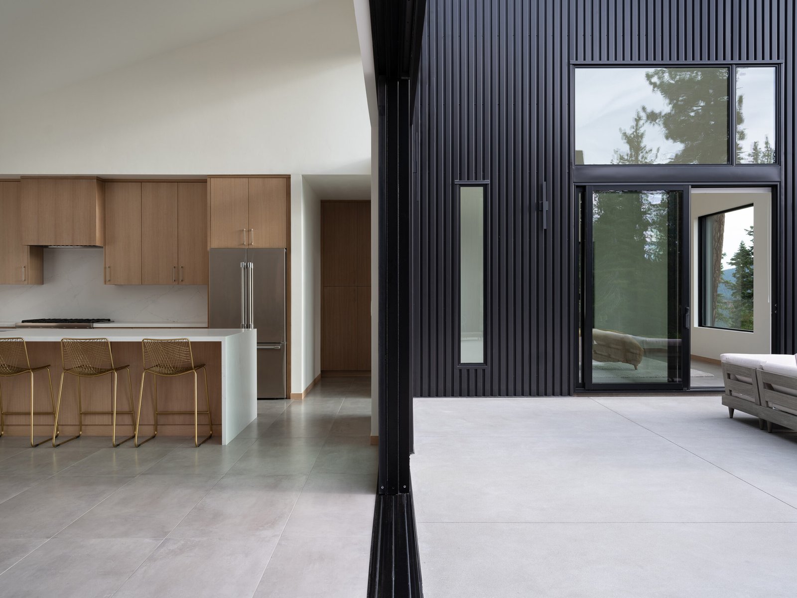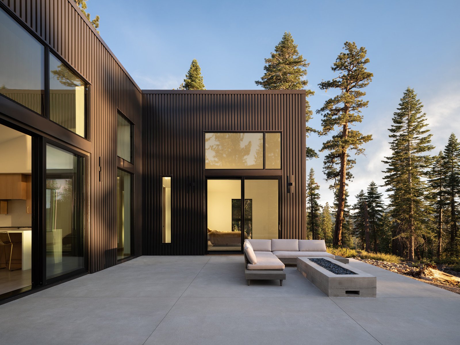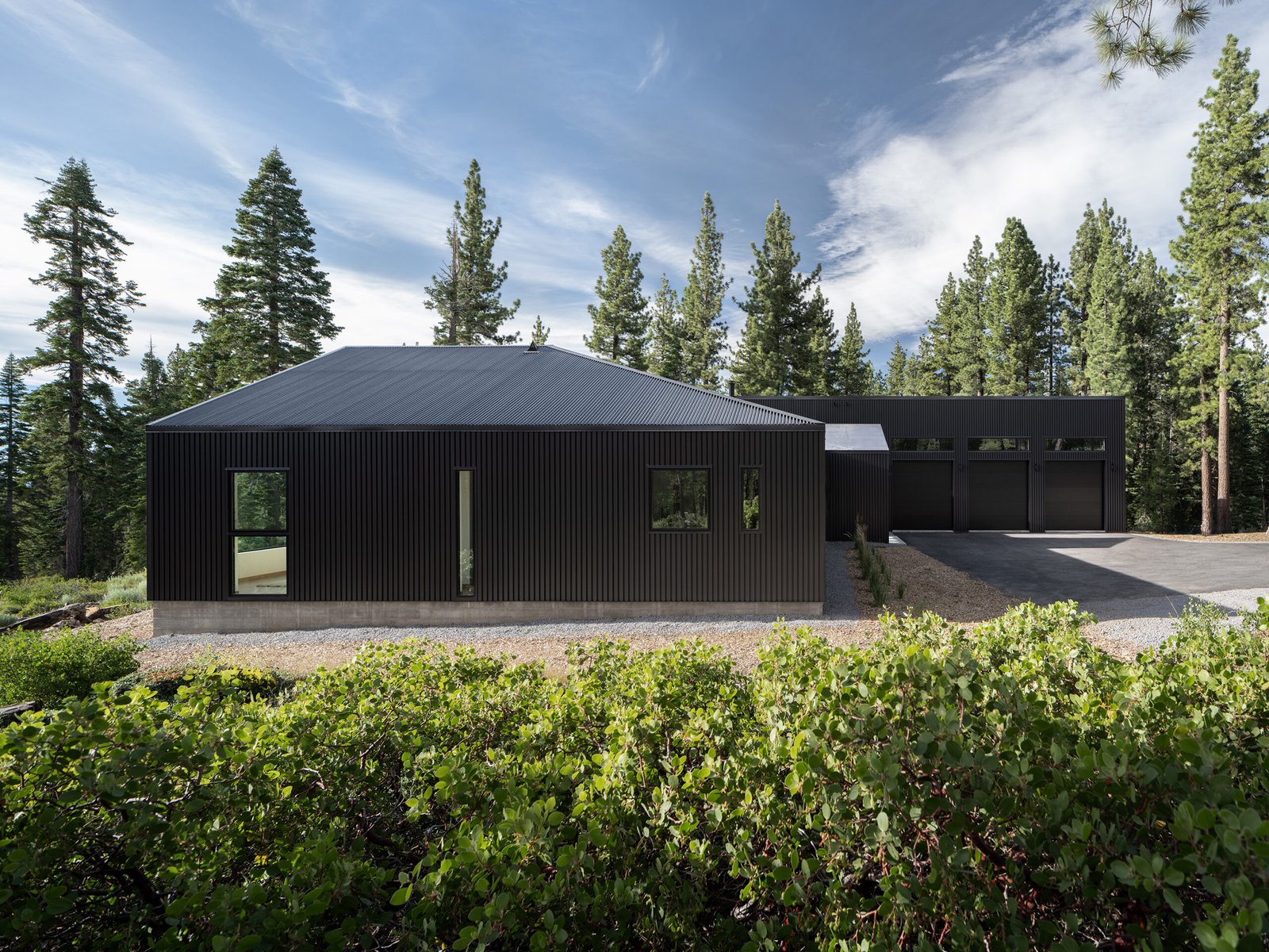 Nestled in the Sierra Nevada Mountains near Truckee, California, this simple/minimal fireproof home masterfully blends with its picturesque environment. Designed with the ever-present threat of wildfires in mind, the residence features non-combustible materials, including black corrugated walls and roofs, ensuring safety without sacrificing aesthetics.