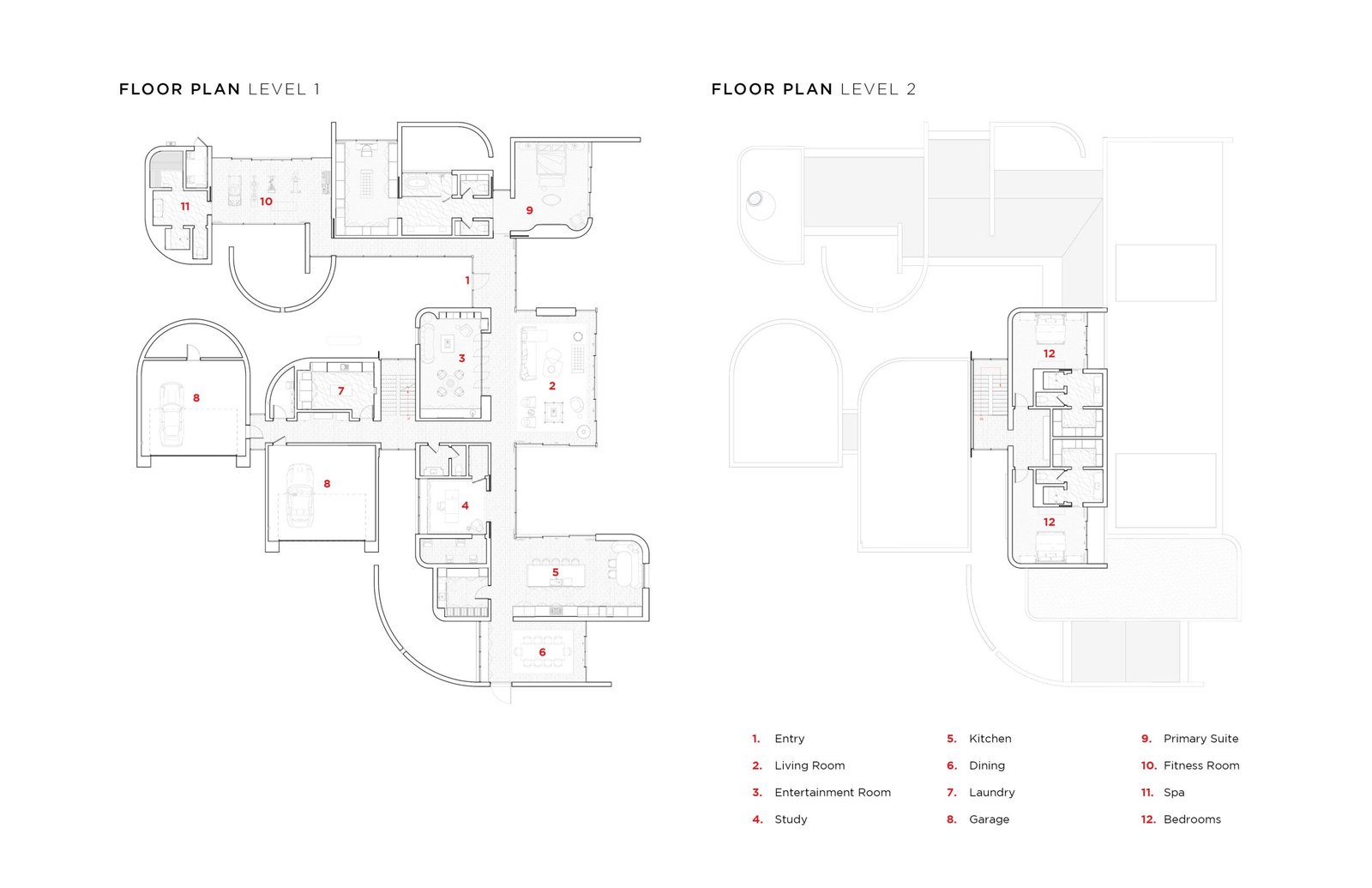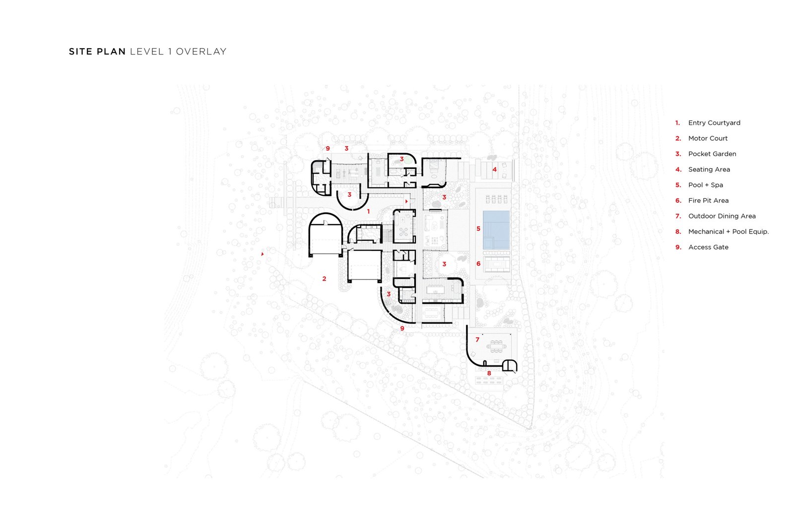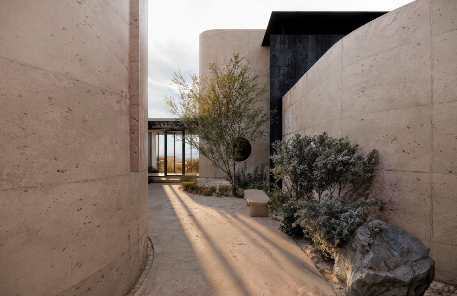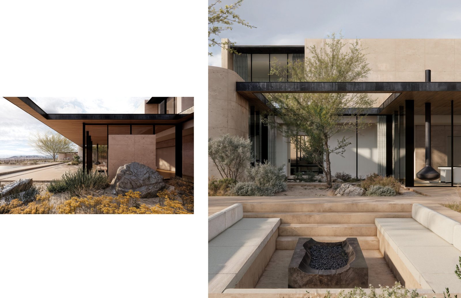 The desert is a landscape of absences as much as presences, where arroyos mark the memory of water long after it has passed. Out of this terrain, Lacuna takes shape as a 7,700-square-foot residence conceived not as an object placed upon the land, but as a form uncovered within it. Its architecture is guided by the logic of erosion, voids carved, passages revealed, and masses shaped by the natural forces of time. From these gestures emerges a dwelling where space flows like tributaries through a canyon, carrying light, air, and shadow as integral building materials. The parti emerges from the contours of the site, where landforms bend and converge like tributaries feeding into a wash. From this central convergence, the plan radiates outward, as if following the traces left by water across the terrain. The house is not conceived as an object placed upon the desert but as a presence revealed from it, a composition of subtraction where voids hold equal significance to built mass. Courtyards, hollows, and passages act as architectural tributaries, giving definition through absence as much as presence. Formally, the massing recalls canyon walls, with curving, monolithic geometries echoing the resilience of Red Rock Canyon. Circulation unfolds as a canyon walk: compressed passages open into expansive courtyards, narrow thresholds dissolve into broad living spaces, and shifting light washes across curved surfaces as the desert sun arcs overhead. The architecture choreographs a rhythm of compression and release, guiding inhabitants through sequences of shelter, exposure, shadow, and light. Materiality reinforces the geological metaphor. Plywood-formed concrete layers like sediment, its striations carrying the imprint of time. Stone anchors the home with geological weight, while wood softens transitions between spaces. Weathering steel, left to patina under desert air, echoes the slow transformation of canyon rock. Openings are treated as if carved by natural forces: apertures aligned with solar paths, skylights that wash surfaces with daylight, and windows that frame horizons like water-cut slots in stone. The experience of Lacuna is at once monumental and intimate. At the scale of the land, its massing rises like sculpted canyon walls. At the scale of daily life, its courtyards, reflective pools, and framed views create moments of pause, memory, and connection. Though water is scarce, its presence endures as metaphor: in the reflective surfaces that hold light like still pools, in the geometry of erosion expressed in form, and in the cycles of compression and release woven through movement. Lacuna is not merely a dwelling but a vessel for time and atmosphere. Defined by absence as much as presence, it emerges as a hollowed landscape where voids shape life as profoundly as walls. In its balance of erosion and construction, permanence and impermanence, the project offers an architecture inseparable from the desert that gave it form.