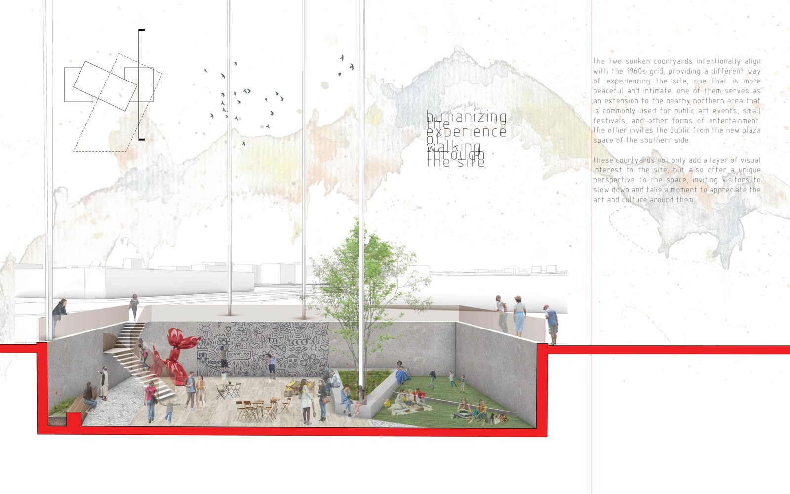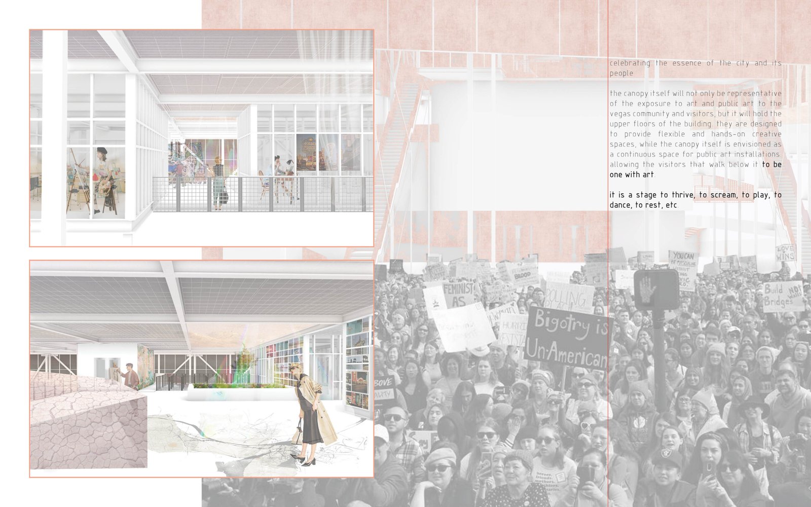 With its placement and concept, the proposed design becomes an anchor and gateway to a district with a large amount of potential. The project gives the opportunity to create a sense of place that celebrates the rich cultural heritage of DTLV. By incorporating public art, creative/ educative areas, and exhibit spaces, the design could not only attract visitors to the district but also provide opportunities for local artists and cultural organizations to showcase their work. This contributes to the overall vibrancy of the district, making it a more attractive place to live, work, and visit. Generating economic benefits to the area, as increased activity and foot traffic can lead to increased business activity and revenue.
