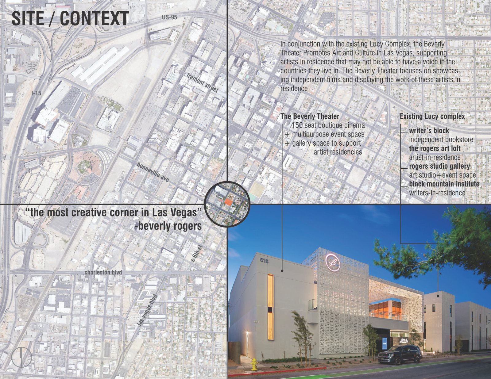 Located in Downtown Las Vegas, The Beverly Theater is a not-for-profit venue that further underscores The Rogers Foundation’s ongoing commitment to supporting the arts in Southern Nevada. Beverly Rogers acknowledges that being a faithful supporter of the arts means making sure the community has what it needs to flourish, and that's the true motivation for this venue. The Design Team developed a permanent home to elevate independent voices, independent film, and artistic expression helping fill a creative and cultural void in the Las Vegas Community. The two-story, 14,457 square-foot film house and performance theater feature three distinct areas including the main theater, outdoor jazz terrace, and courtyard, each thoughtfully designed and purposefully crafted to allow for unique content offerings and programming. Additionally, The Beverly Theater has an on-site box office, retail/concession space, a green room, a catering kitchen, and educational workspaces. The main theater features raked seating of nearly 150-seats resting on a retractable platform that can allow for expanded standing room capacity and convert the venue into a multi-purpose black box theater with the push of a button. Planned during the Pandemic, this under 15-million dollar venue, fulfills the vision of bringing people together when we were literally apart.