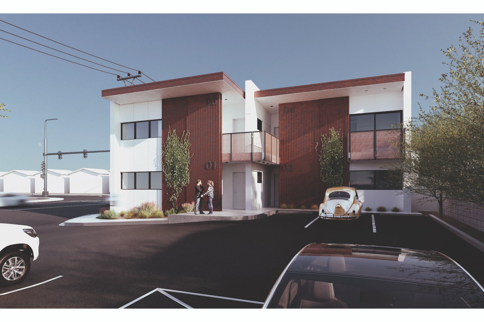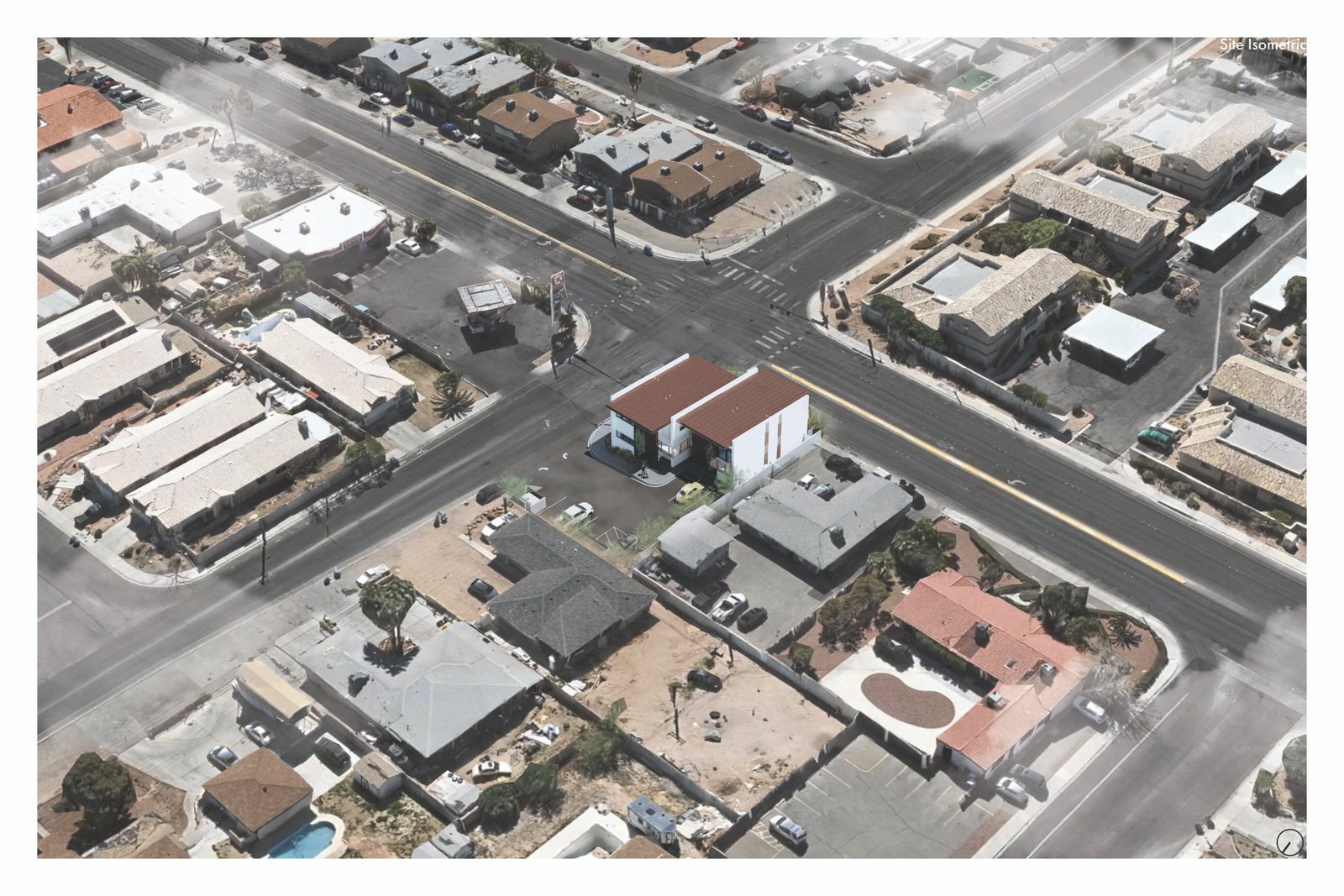 For the past several years, Las Vegas has found itself in an affordable housing crisis. As of 2025, there is an estimated shortage of fifty-eight thousand homes in the valley. In an attempt to (remedy) this, developers have continued to sprawl outward, pushing the limits of our valley’s buildable area. These attempts, however, are unaffordable to the working class, and without an adequate public transportation system in place, they are also inaccessible to those without a car. When we began The Weston, the goal was to create housing that would 1) be affordable and accessible to the area’s demographic, 2) promote a reasonable density that respects the existing vernacular, and 3) comply with the 2050 master plan as a part of the urban infill initiative. The existing context is an assortment of single-family homes, apartment complexes, and small local businesses. Taking cues from its neighborhood, The Weston aims to bridge the gap between single-family homes and dense apartment complexes by proposing a fourplex. This fourplex reimagines desert urban living by celebrating a healthy lifestyle through access to cross-ventilation, natural lighting, and inspirational views. Its location on a major transit line facilitates residents’ use of public transportation, providing access to nearby retail, dining, and entertainment. The design exemplifies a progressive shift towards a community-oriented, nature-centered lifestyle that enhances the overall character of the neighborhood.