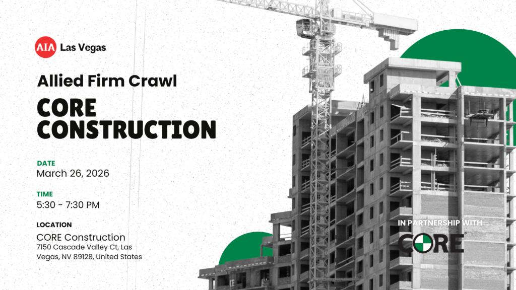 Experience the Allied Firm Crawl: CORE—an in‑depth look at how Nevada public work projects are delivered, specifically through the lens of NRS‑allowed construction delivery methods. This program is designed to help architects and industry professionals clearly understand how different delivery structures impact design, risk, and collaboration.