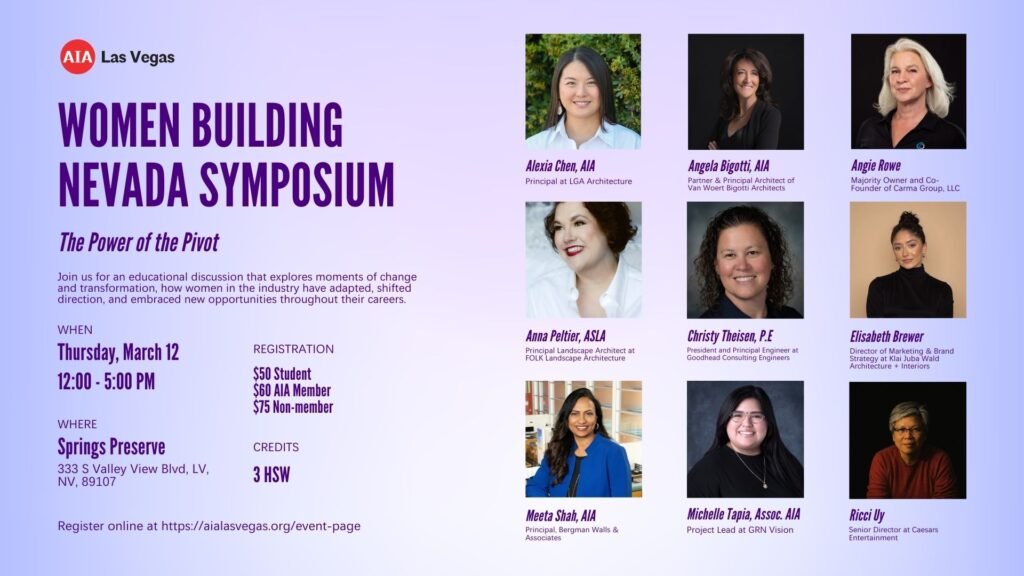 This Signature Event, hosted by the Women in Architecture Committee, celebrates the remarkable women shaping Nevada’s built environment. Centered around this year’s theme, The Power of the Pivot, the program explores moments of change and transformation — how women across architecture, engineering, construction, development, and design have adapted, shifted direction, and embraced new opportunities throughout their careers.