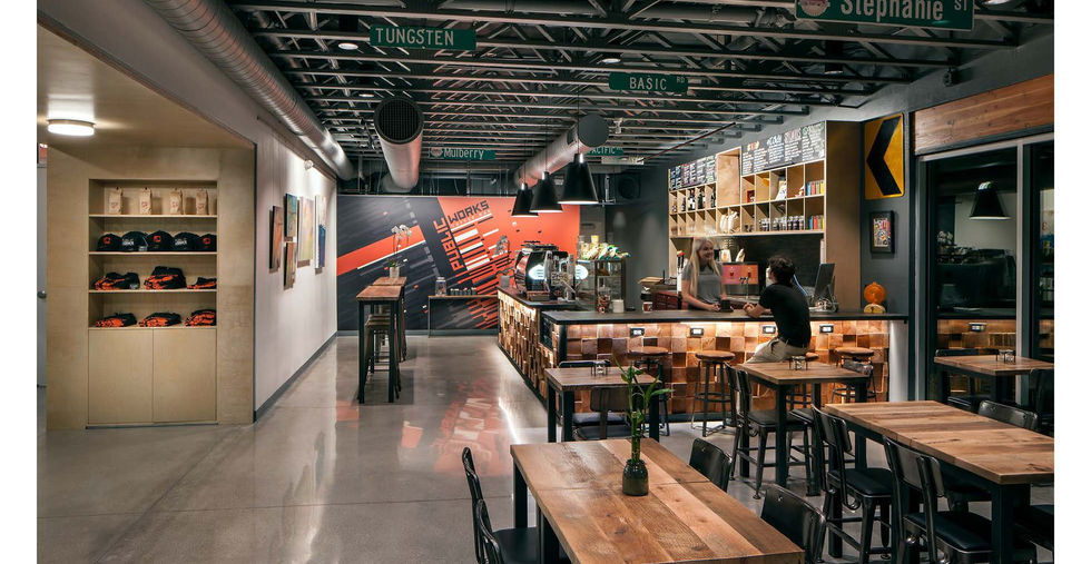 The project phasing occurred over 5-years due to the developer’s incremental financing based on multiple city grants and land acquisitions. The commercial building is 11,000sf and 2-stories. It addresses the street with massing that provides a direct connection for the coffee shop and allows pedestrians to see activity within the building. The architecture is modern and human scaled to fit within the neighborhood. The materials are straight forward, utilizing finishes common to the region. The building massing is stepped to appear as two separate structures to reduce scale from the street and provide a forecourt in front of the offices that allow viewing of the two-story mural on the south façade. It also allows the flexibility to provide for future reorganization of the office and retail mix based on market demands.