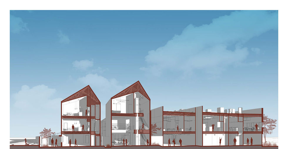 The buildings utilize a staged cooling strategy that incorporates operable windows throughout allowing for weather permitted passing ventilation. Ceiling fans provide additional fresh air displacement and contain temperature sensors, automatically activating when the space reaches a set temperature. The HVAC systems are programmed to respond when the former two stages can no longer maintain occupant comfort. The office spaces use motion detectors to automatically turn the lights off when not in use reducing energy consumption.